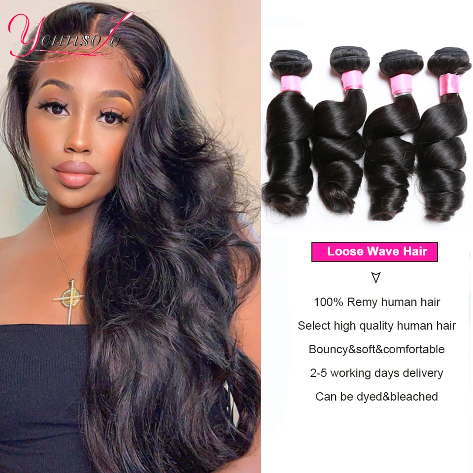 Younsolo Loose Wave Bundles Brazilian Human Hair Loose Weave Bundles 1/3/4/Pcs Lot Natural Color Human Hair Extensions For Women